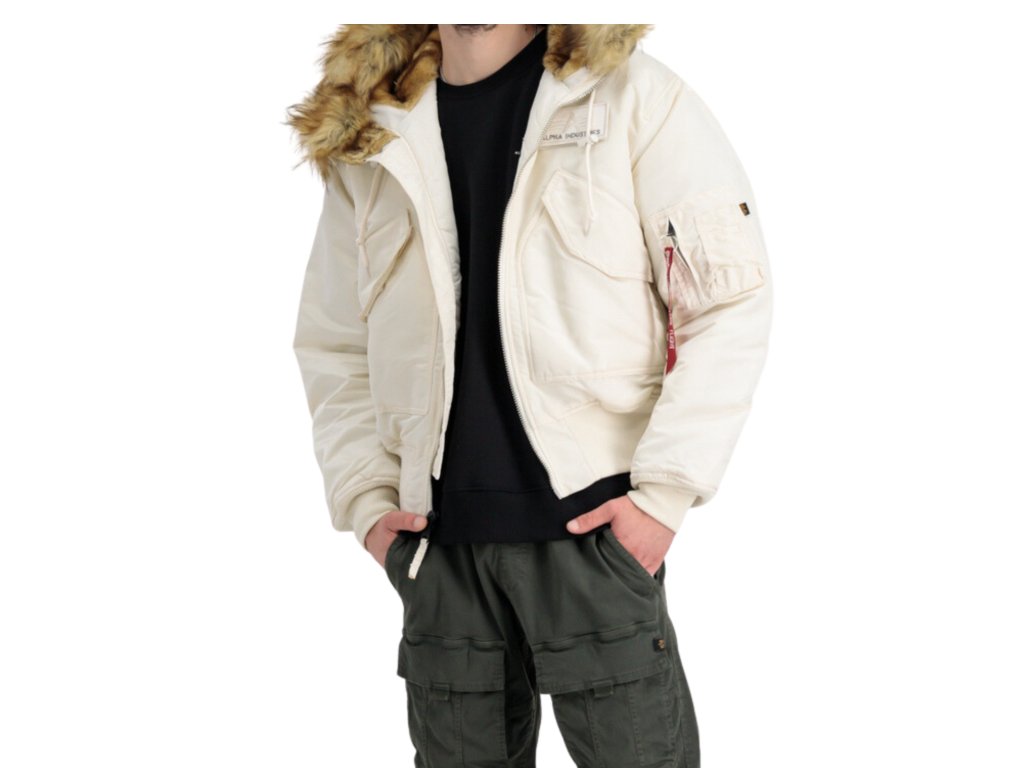 Alpha Industries pánska zimná bunda 45P Hooded Custom – jet stream white