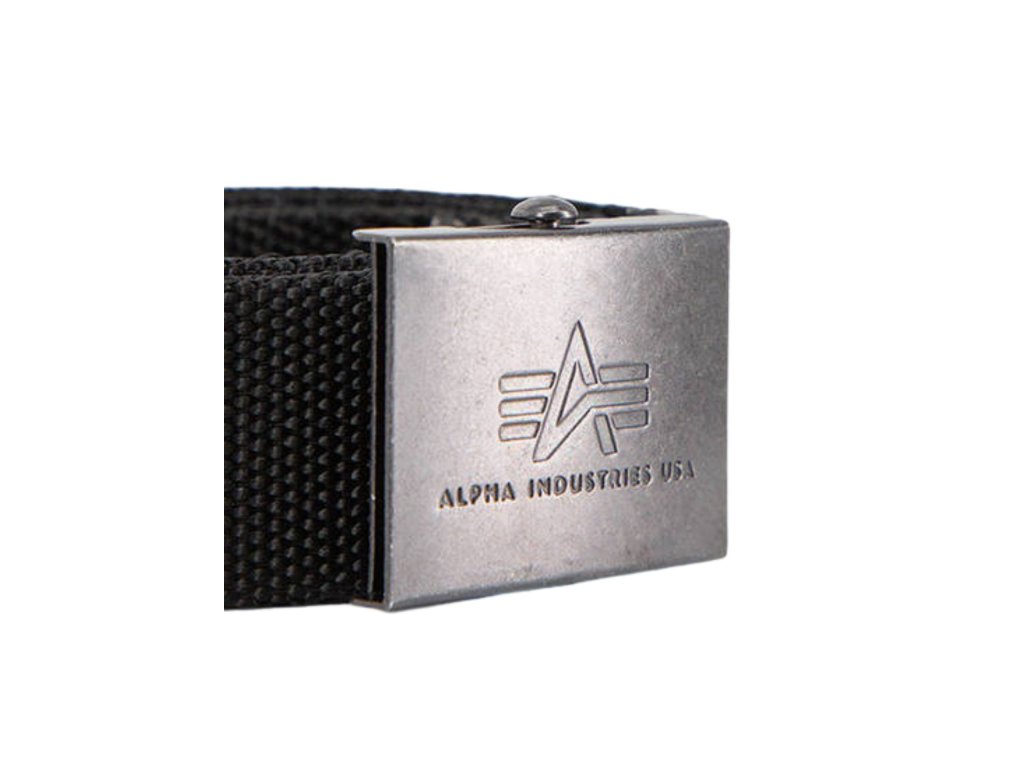 Alpha Industries Big A Belt Black 176907/03 – čierny nylonový opasok s kovovou prackou